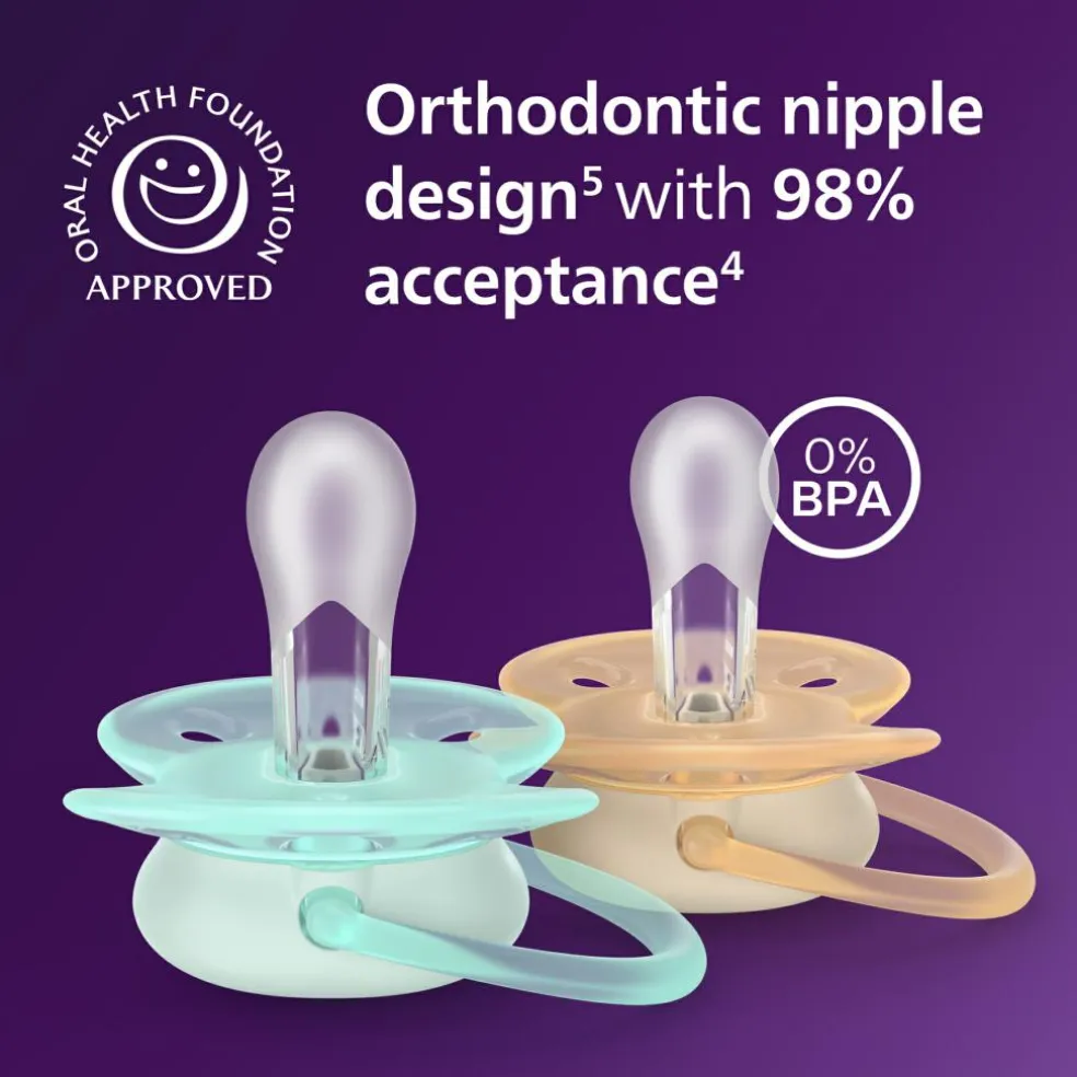 Den silkebløde silikonesut er blød og fleksibel med en naturlig finish, der føles velkendt for barnet, og resulterer i øjeblikkelig accept, hvilket bekræftes af den rapporterede acceptrate* på 98 % blandt spædbørn.