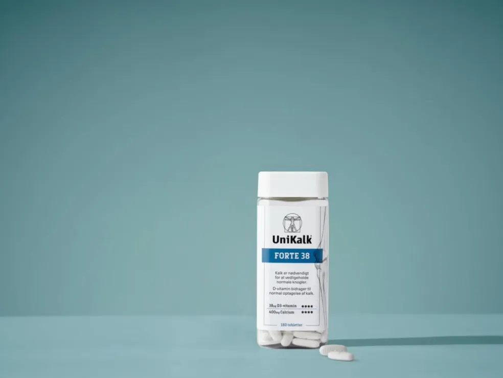 UniKalk Forte 38 er et kosttilskud, der indeholder kalk (calcium) og D-vitamin. Kalk er nødvendigt for at bevare normale knogler. D-vitamin bidrager til at vedligeholde normale knogler og bidrager desuden til et normalt calciumindhold i blodet og en normal optagelse og udnyttelse af calcium.