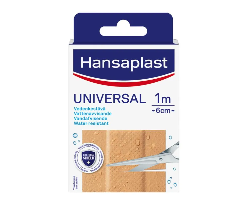 Hansaplast Universal plastre egner sig til tildækning og beskyttelse af alle slags små sår.