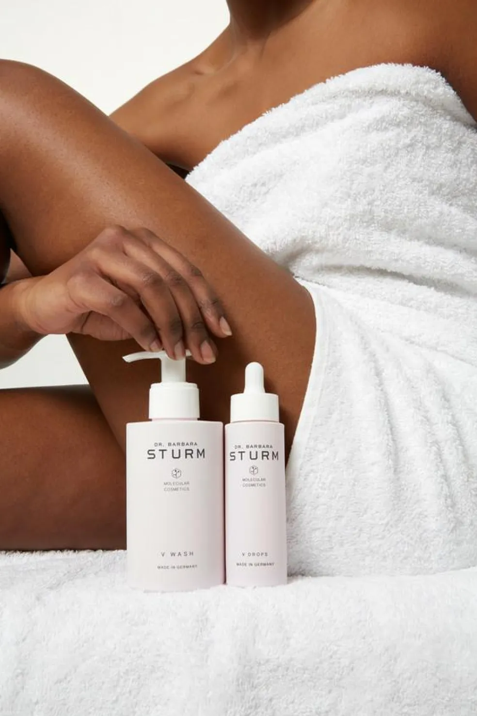 Efter rens med Dr. Barbara Sturms V WASH, påfør V DROPS i håndfladen.