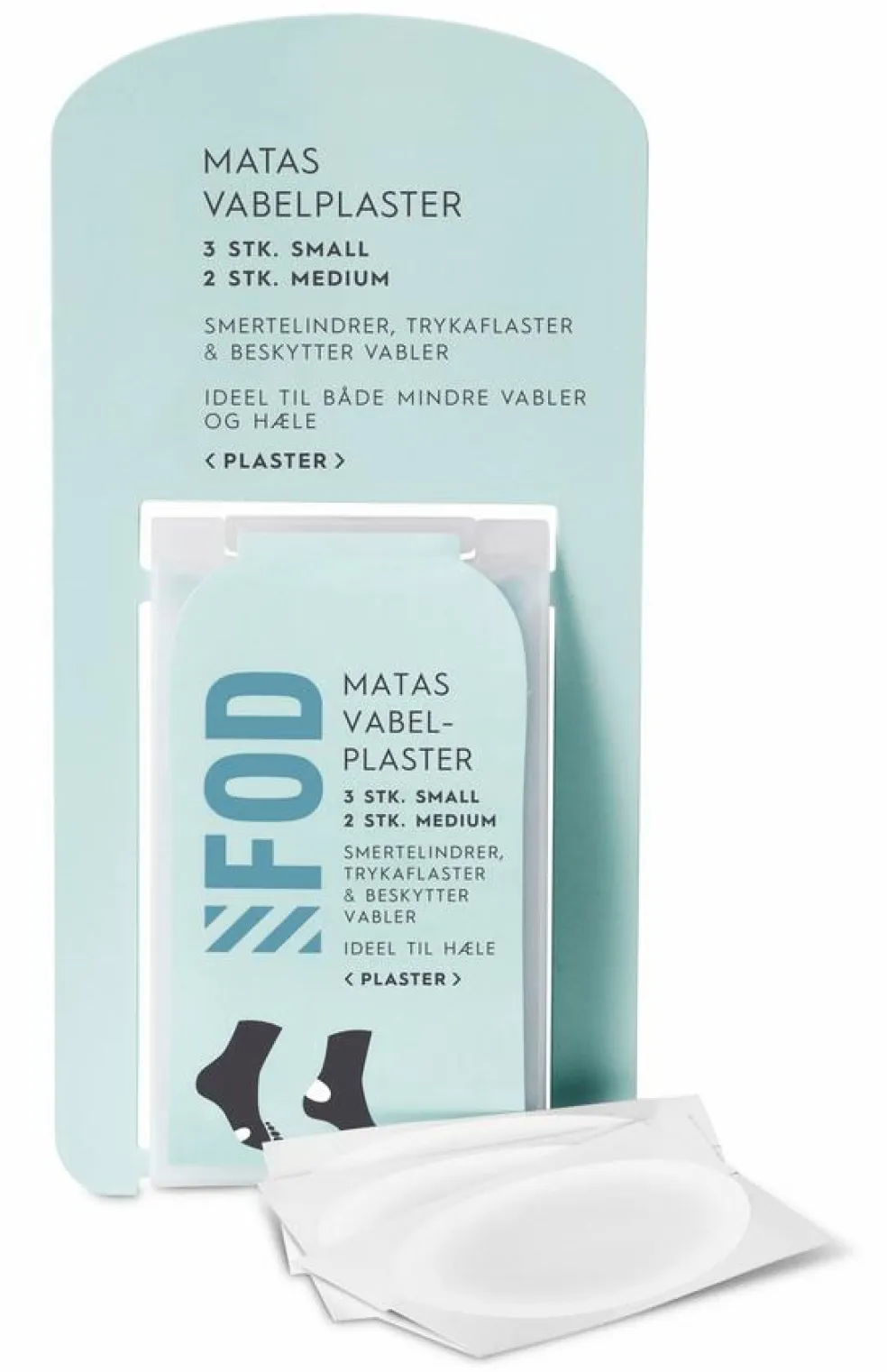 Størrelse small er ideel til mindre vabler, og størrelse medium er ideel til hæle.