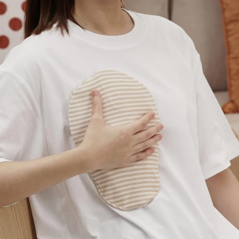 Kom aldrig varme- og kølepuden direkte på brystet, men benyt altid det medfølgende omslag.