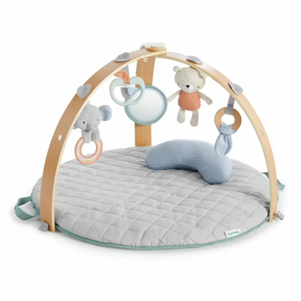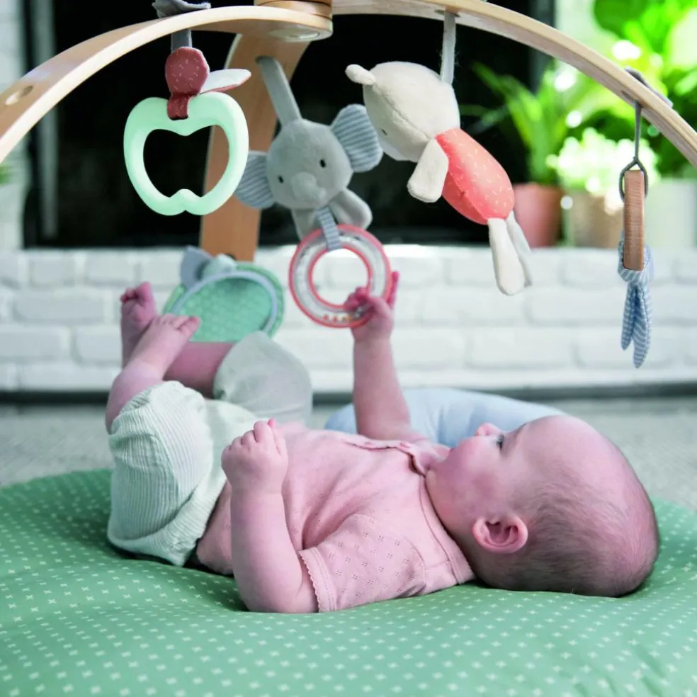 Aktivitetsstativet er super fint og stilrent og passer ind i ethvert hjem. Til den naturfarvede trælegetøjsbjælke medfølger der diverse aktivitetslegetøj samt en pude hvor den lille kan øve finmotorikken.
