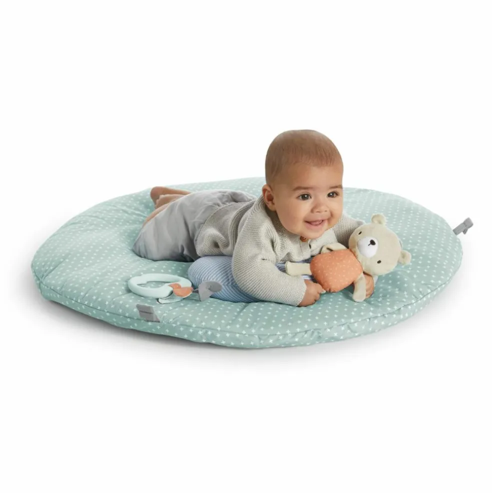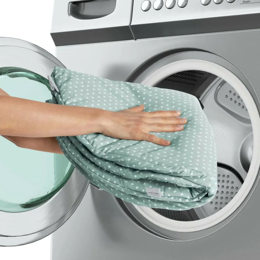 Legemadressen og aftagelig betræk – Fjern legetøjsstang, legetøj og plyslegetøj før vask – tåler vaskemaskine med koldt vand. Ingen blegemiddel. Lufttørre.