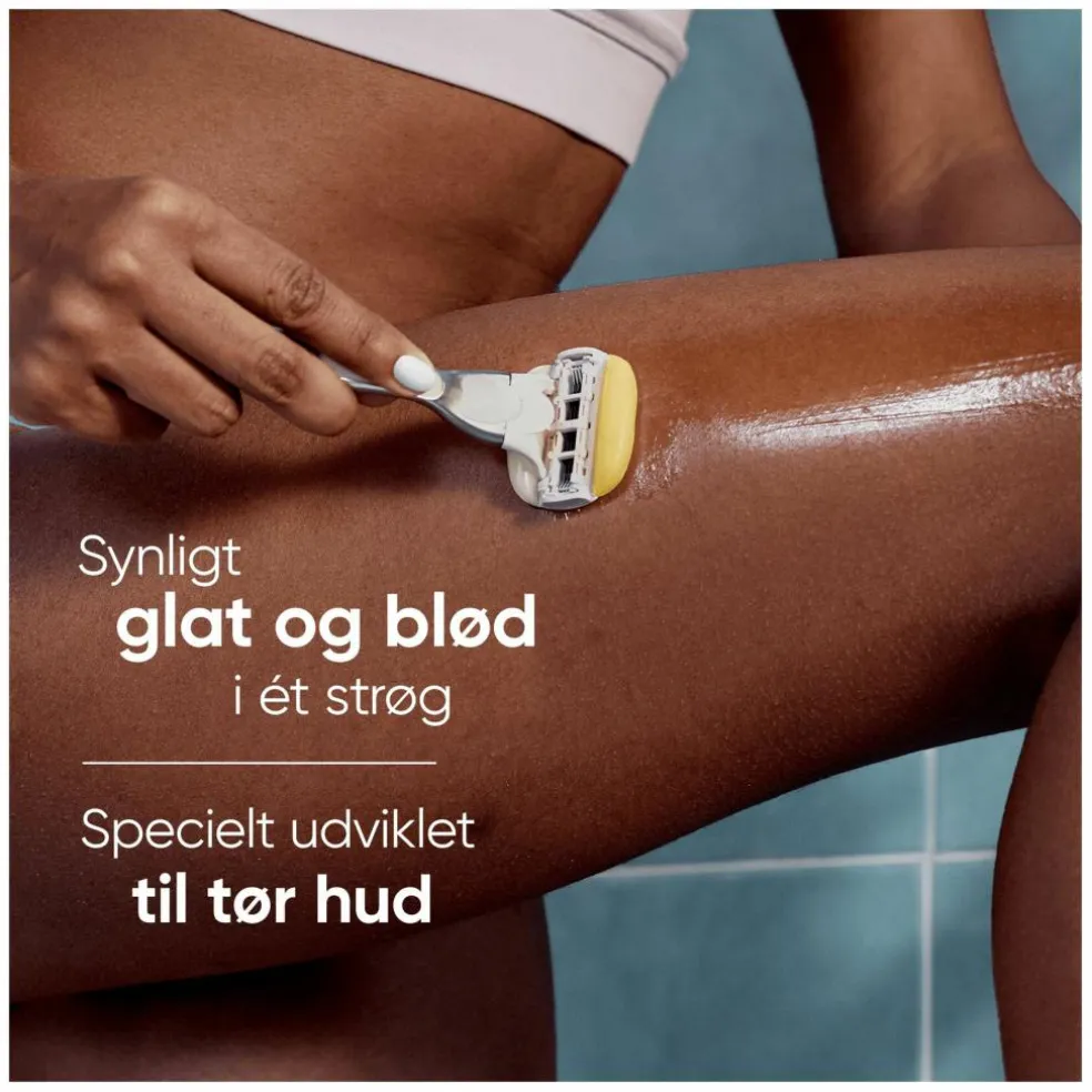 Venus Pro ComfortGlide Barberblade, der er godkendt af hudlæger, er skabt til at pleje selv den tørreste hud og give den en glathed, der varer ved.