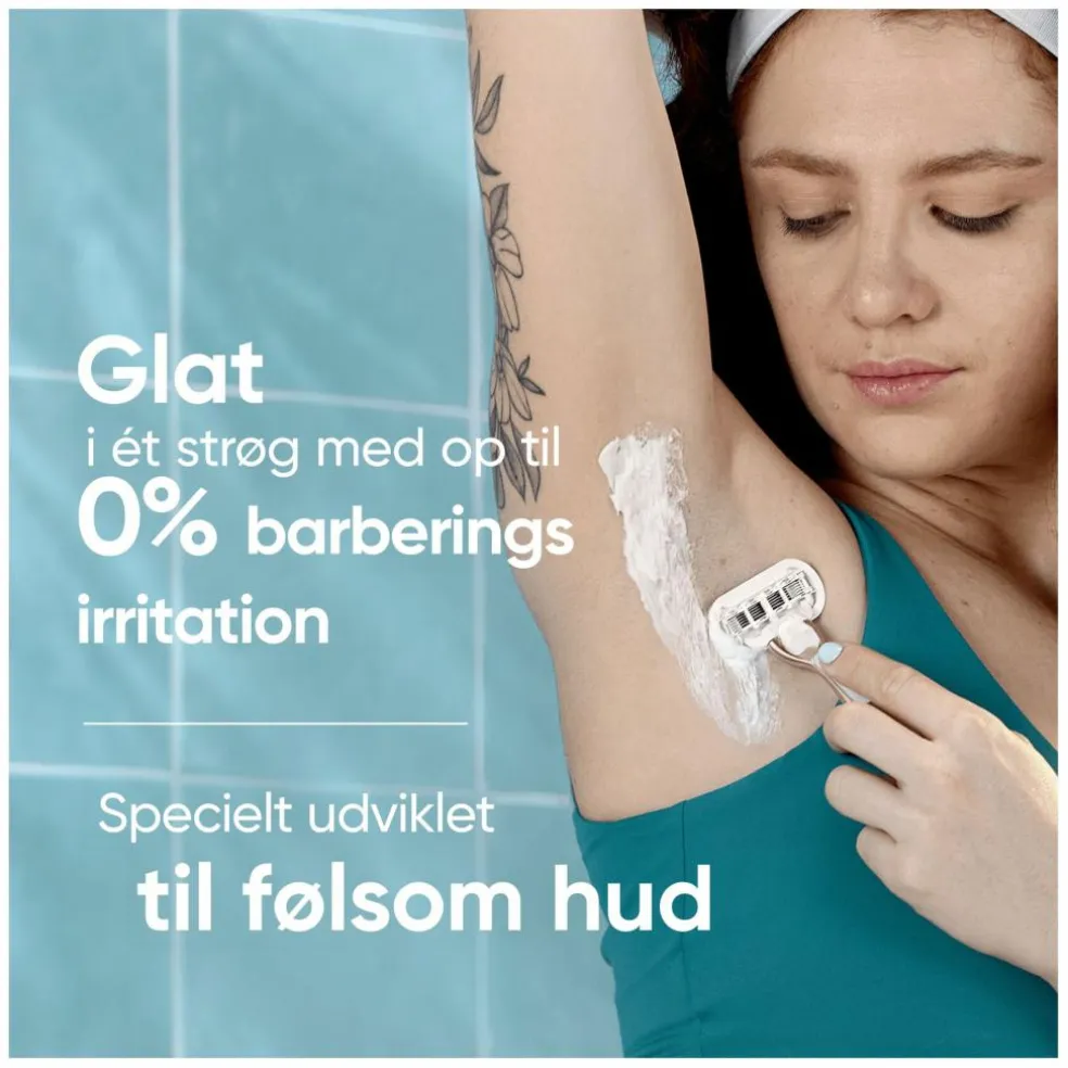 Mød Gillette Venus Pro Smooth Sensitive Barberblade. Den er unikt designet til kvinder med selv den mest sensitive hud og giver en holdbar barbering med op til 30 dages glathed.