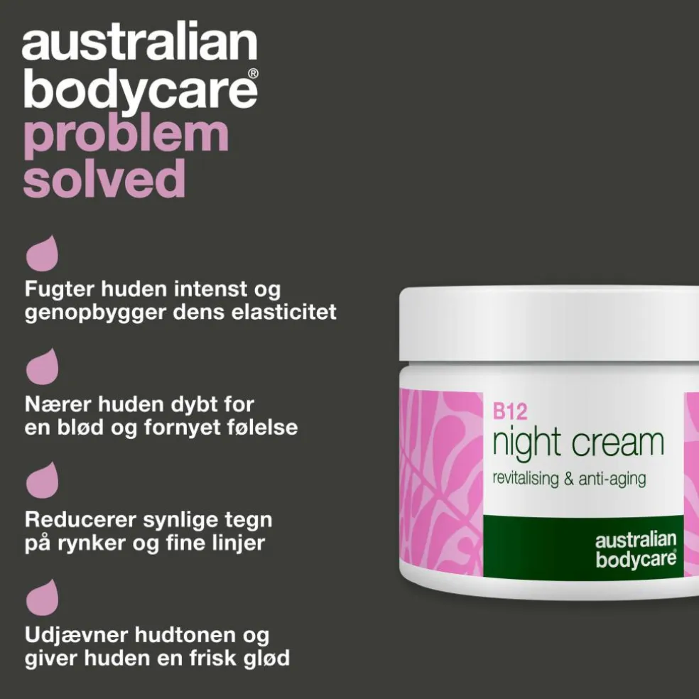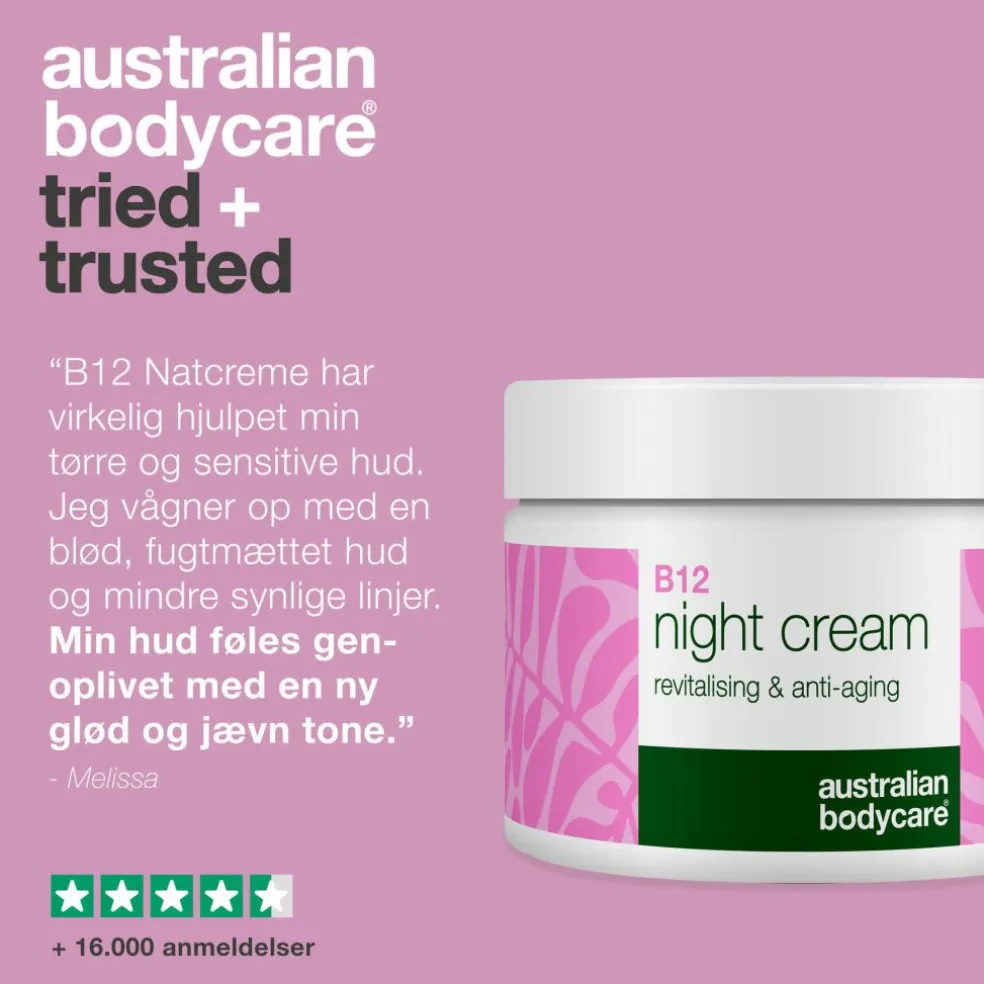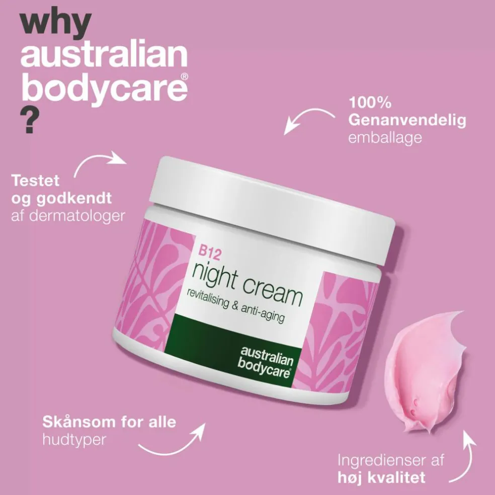 Brug denne natcreme sammen med Australian Bodycares Vitamin B12 dagcreme for at opnå den bedst mulige balance i din hudpleje.