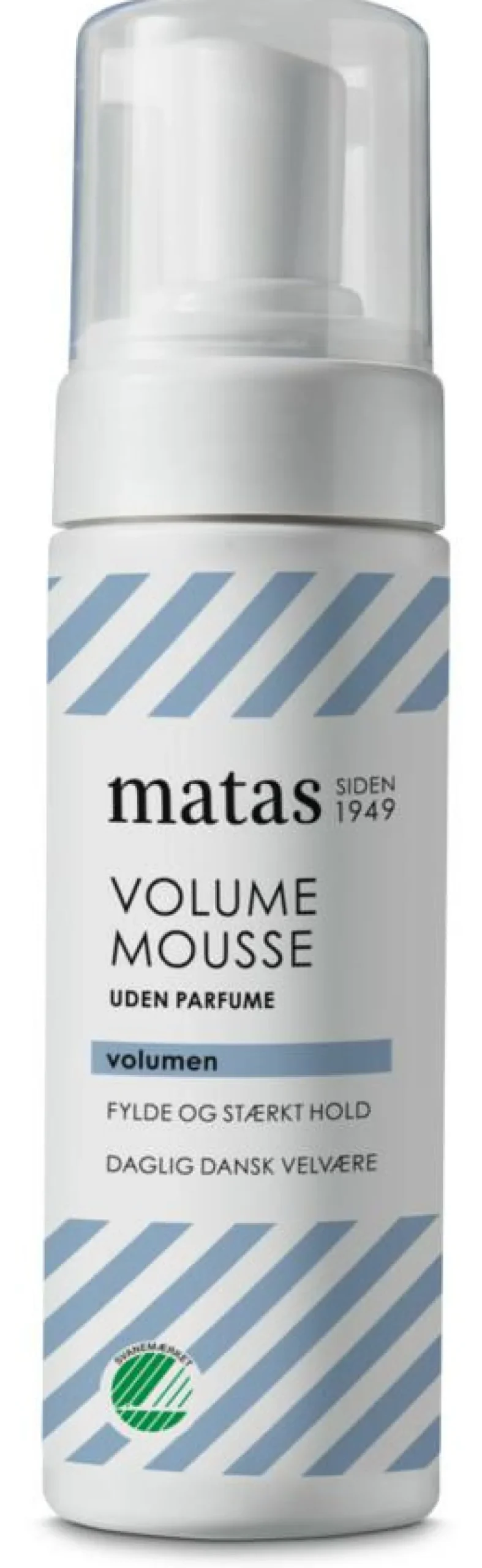 Kram Matas Volume Mousse ind i åndklædetørt hår og style herefter. Kan også anvendes i tørt hår.