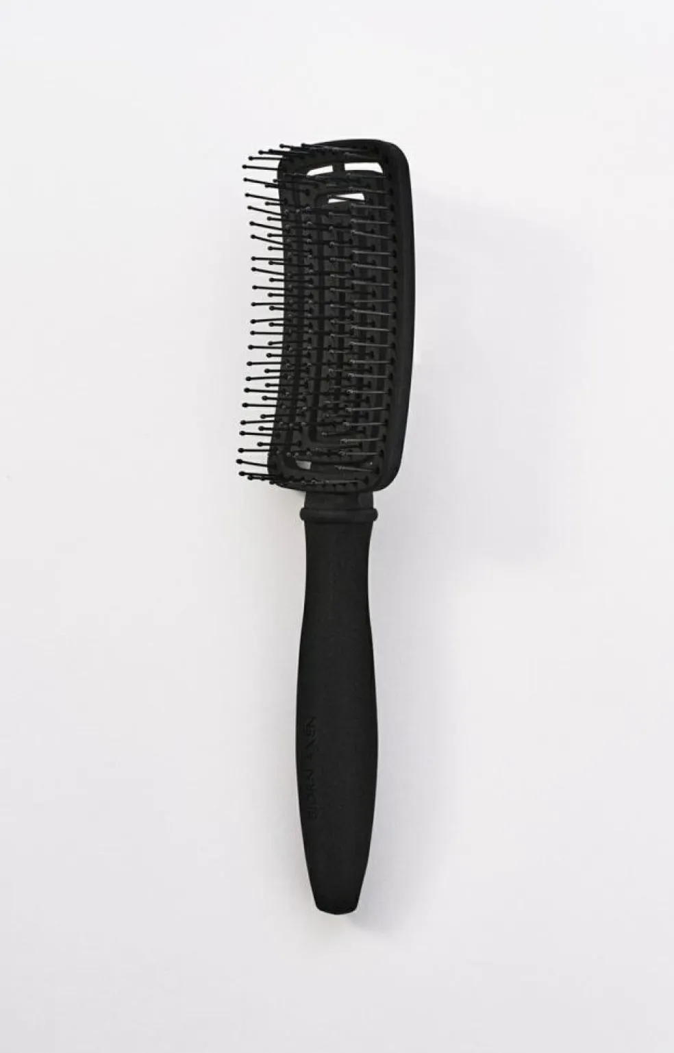 Børstens fleksibilitet kombineret med de bløde børstehår gør den perfekt til skånsom udredning af både tørt, håndklædetørt og fugtigt hår. Ventilationshullerne reducerer tørretiden ved føntørring, og håndtaget er specialdesignet af Björn Axén for at give det bedste greb og god kontrol, når du styler. Den genanvendelige børstetaske er smart til opbevaring og perfekt til rejser.