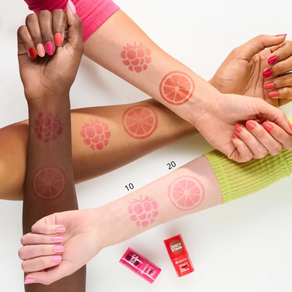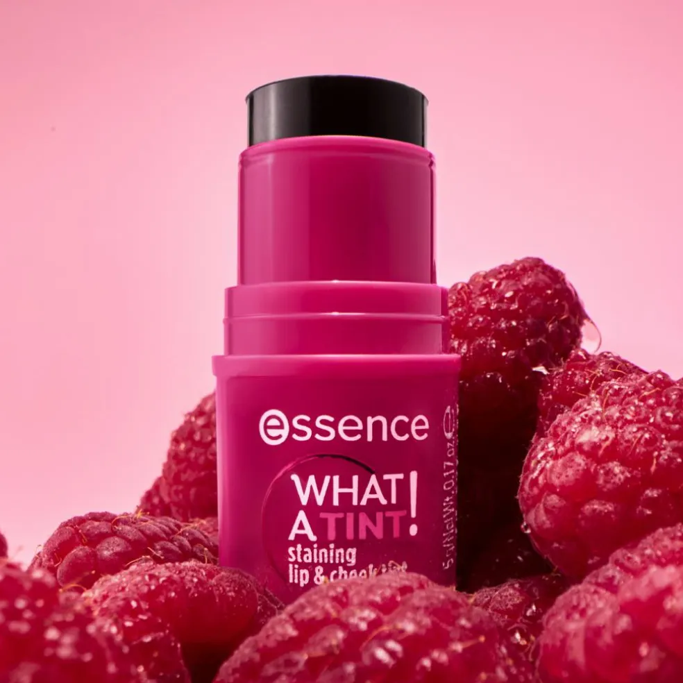 Giv dit look et pift af farve med essence WHAT A TINT! staining lip & cheek tint 10 Raspberry Vibes i en pink nuance med naturlig finish. Pomadeteksturen smelter ind i huden og efterlader en strålende farve, der føles ultralet på læber og kinder. Den lækre frugtige duft og en forfriskende oplevelse ved påføring er en forkælelse for alle sanser. Den praktiske stift er perfekt til en hurtig opfriskning og skaber et naturligt strålende look med et touch af farve på få sekunder. Fugtig pomadeformel, der mærkes forfriskende på huden ved påføring Tekstur, der er nem at tone ud og bygge op i lag Alsidigt 2-i-1-produkt til læber og kinder Farve til læber og kinder. Blend hurtigt med fingerspidserne.