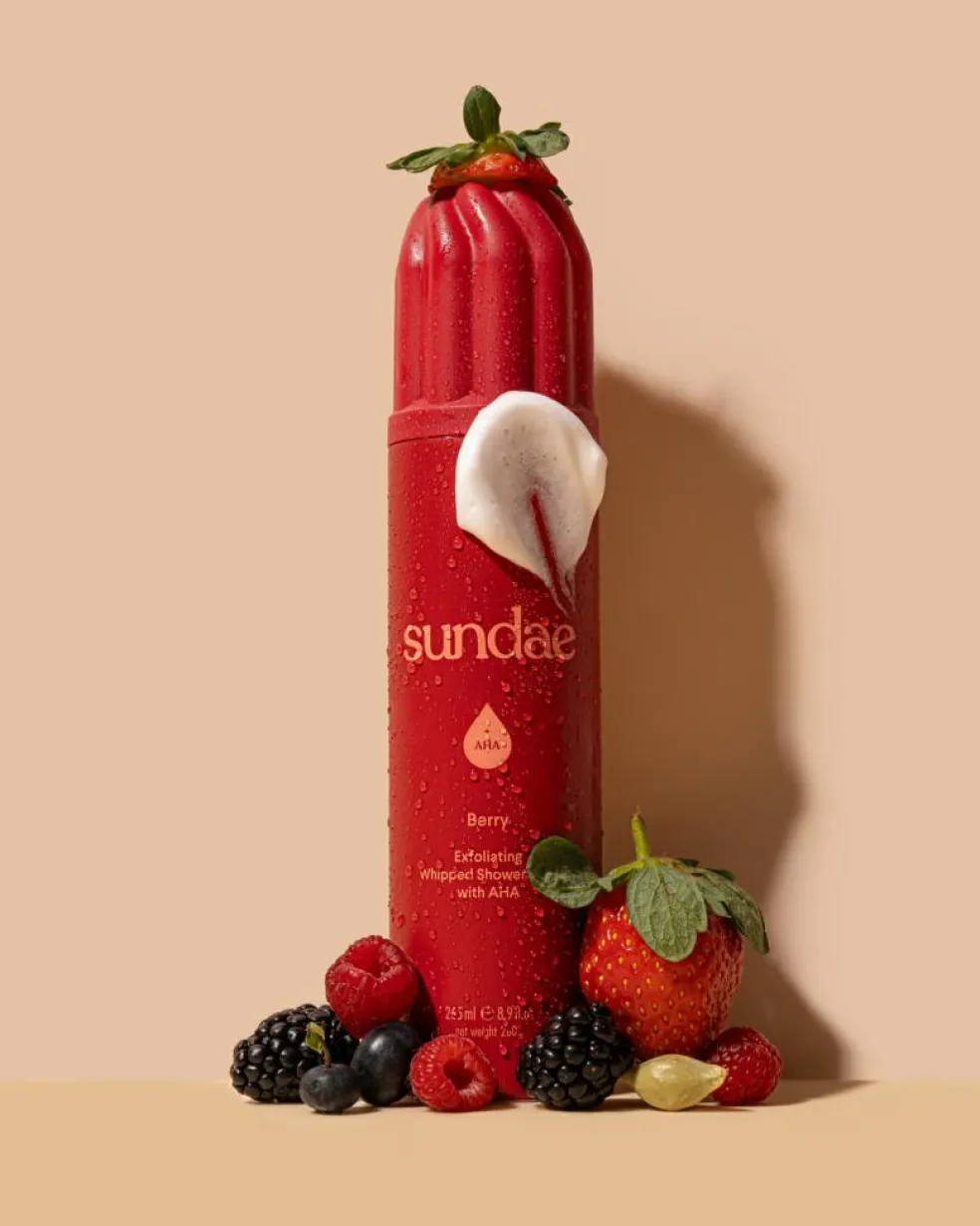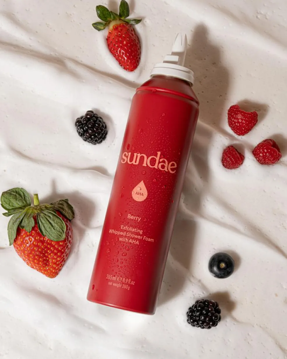 Sundae Berry eksfolierer blidt huden med AHA’er, mens de fugtige og forfriskende noter efterlader din hud duftende og ser fantastisk ud.