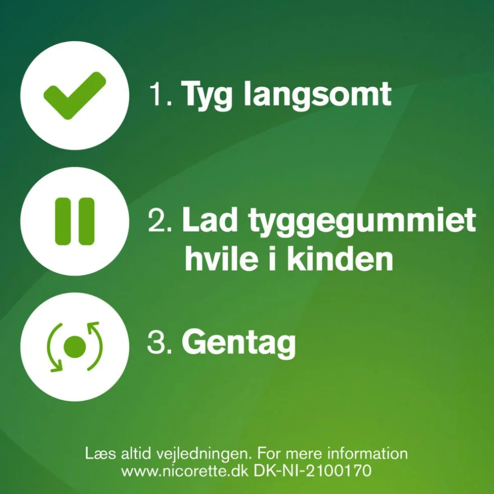 Brug altid Nicorette tyggegummi nøjagtigt efter lægens eller apotekspersonalets anvisning.