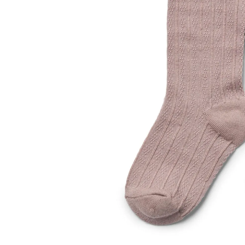 Wheat’s uldstrømpebukser med blondemønster er uundværlige i dit barns garderobe. Disse er designet i en skøn uldblanding, så dit barn kan holdes varmt dagen lang.