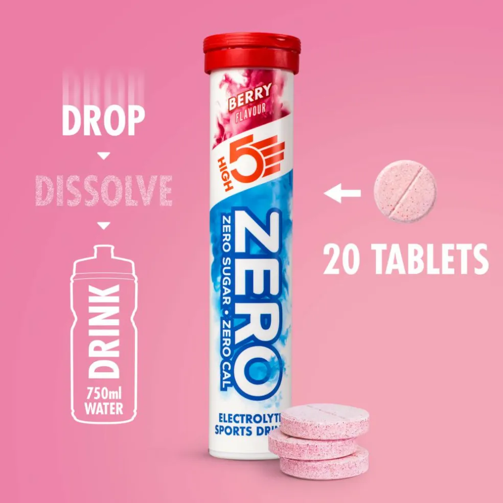 High5 ZERO er en velsmagende, sukkerfri elektrolyt brusetablet som opløses i en vand.