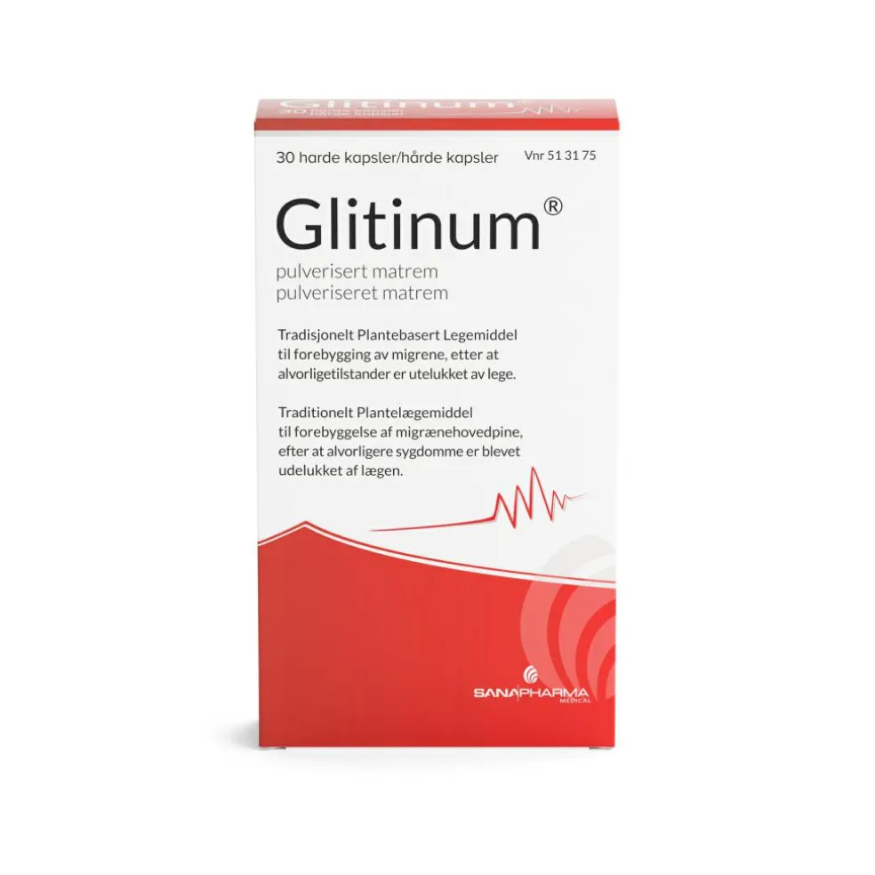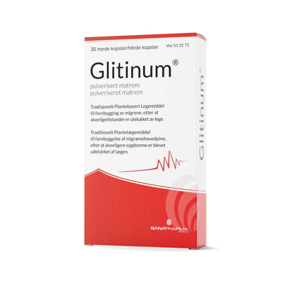 3. Hvis symptomerne forværres under brugen af lægemidlet, skal patienten informeres om at kontakte en læge4. Opbevares ved temperaturer under 25 °C. Holdbarhed 3 år5. Glitinum, hårde kapsler Tanacetum parthenium (L.).