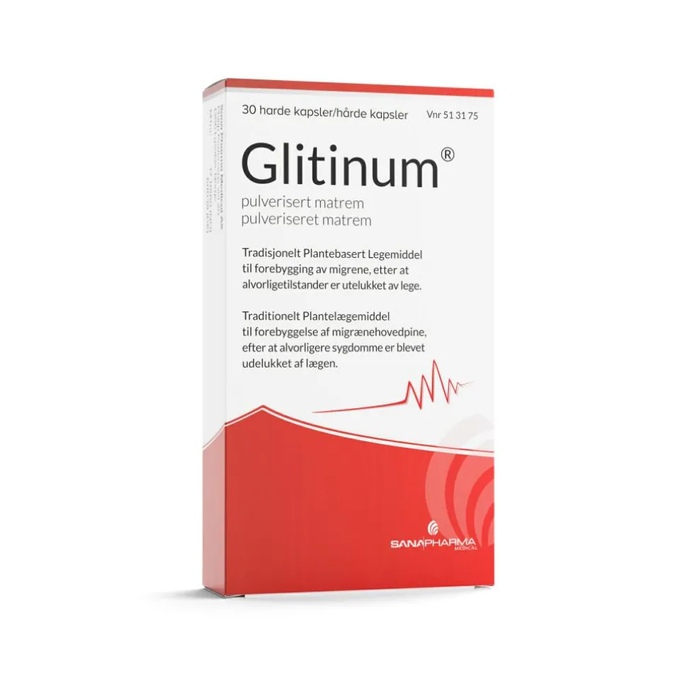 Hver kapsel indeholder 100 mg pulveriseret tørret matrem urt.. indikationer: Traditionelt plantelægemiddel, til forebyggelse af migrænehovedpine, efter at alvorligere sygdomme er blevet udelukket af lægen.