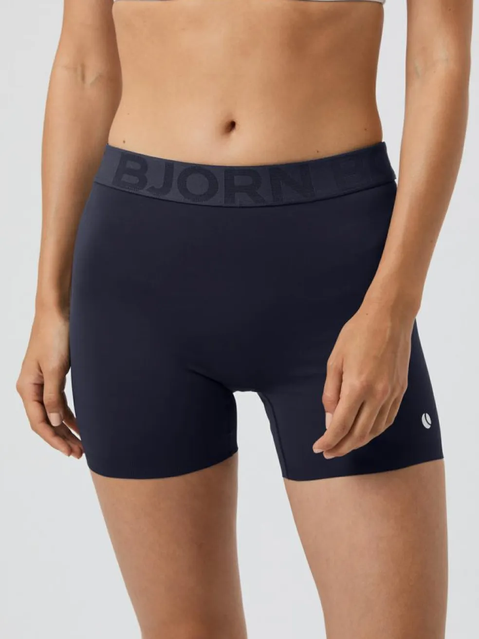 Björn Borg Ace Short Shorts til kvinder er fremstillet af blødt og fleksibelt genbrugspolyester med høj strækbarhed. De har en kort benlængde og en høj talje og har laserskårne kanter for at undgå synlige sømme, silikone i benåbningerne for at sikre, at de bliver på plads, og den klassiske elastiske linning med mærke.