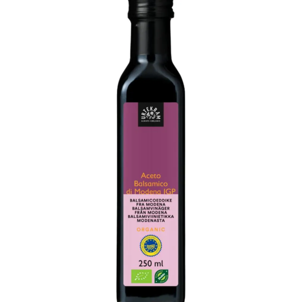 Italiensk balsamico-eddike fra Modena, balsamico-eddikens hjemstavn. Denne balsamico er lagret på træfade i mindst tre år, hvilket giver en let syrlig-sød smag og aroma.