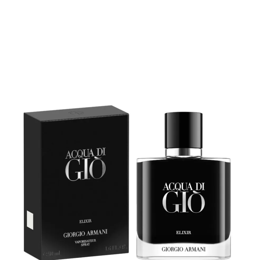 For at fremkalde intensiteten i ACQUA DI GIÒ ELIXIR introducerer vi en ny flakon med en markant firkantet silhuet med afrundede hjørner og dristig sort lakering indvendig. Denne statementflakon er designet med en tung glasbund og sort hætte med sølvbånd, der giver et fængslende og modsætningsfyldt strejf.