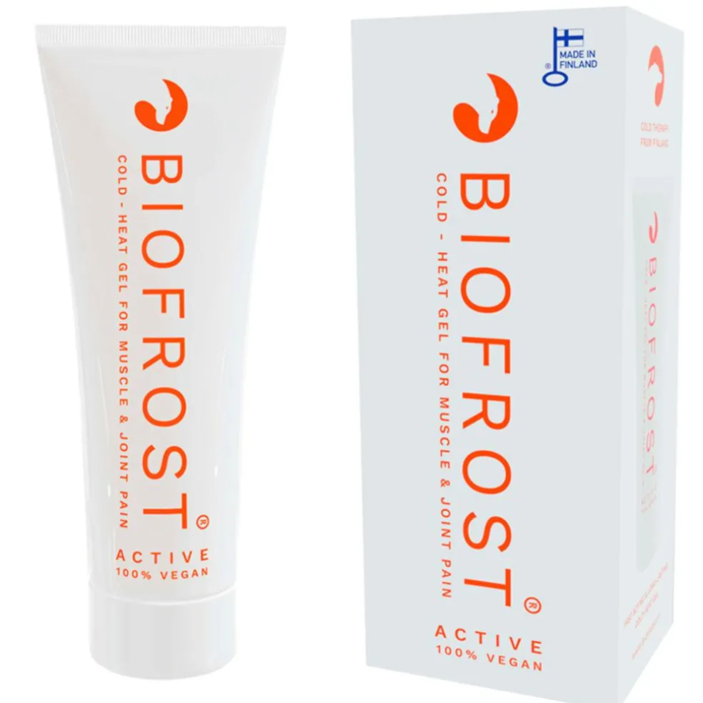 Fordelen ved BIOFROST® ACTIVE™ er hurtig og effektiv medicinfri smertelindring uden farve, uden parabener og så er produktet vegansk. Hvis man kan lide fornemmelsen af varme, ved smertebehandling, kan BIOFROST® ACTIVE™ med fordel vælges, samtidig med at man kan behandle inflammatoriske områder, da den fungerer som en koldterapi-form.