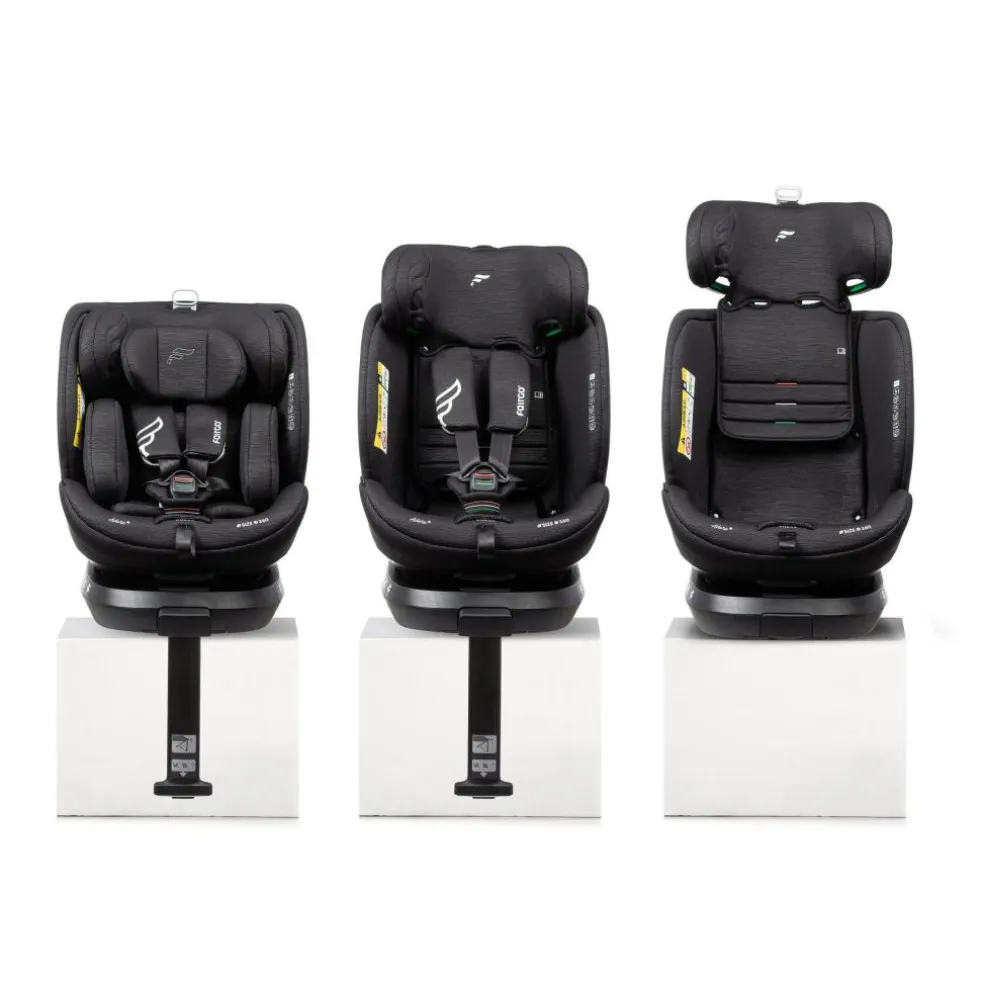 40-105 cm: ISOFIX + støtteben; bagudvendt 76-105 cm: ISOFIX + støtteben; fremadvendt 100-150 cm: ISOFIX + 3-punkt-sele; fremadvendt I-size: 40-150 cm Alder: 0-12 år Vægt: 3-36 kg Gruppe: 0-1-2-3