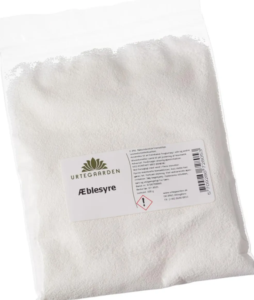 Æblesyre til fødevarer er fremstillet naturidentisk (som en efterligning af stof, der findes naturligt). Æblesyre kaldes også malinsyre og er en kemisk ren æblesyre (C4H6O5) på pulverform.