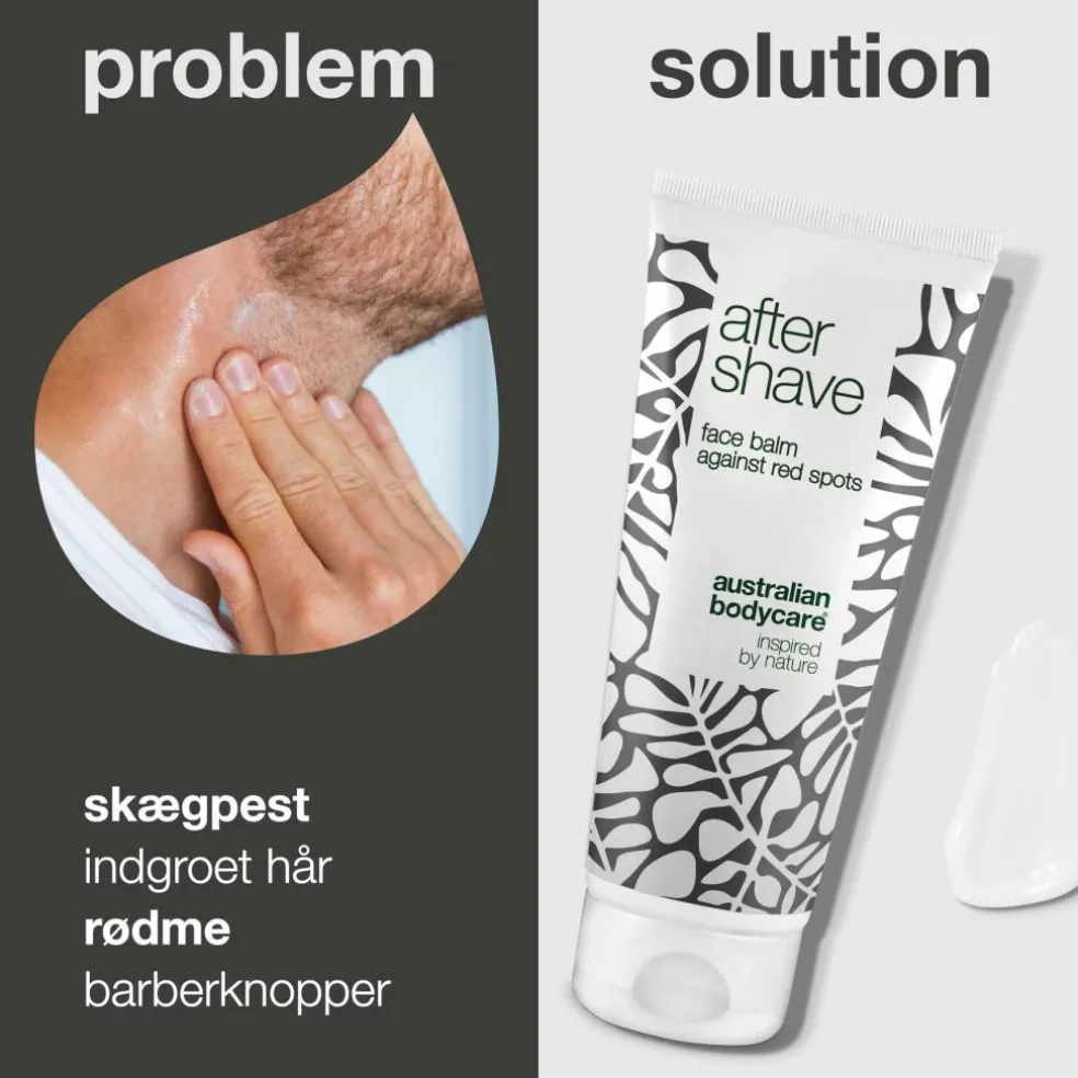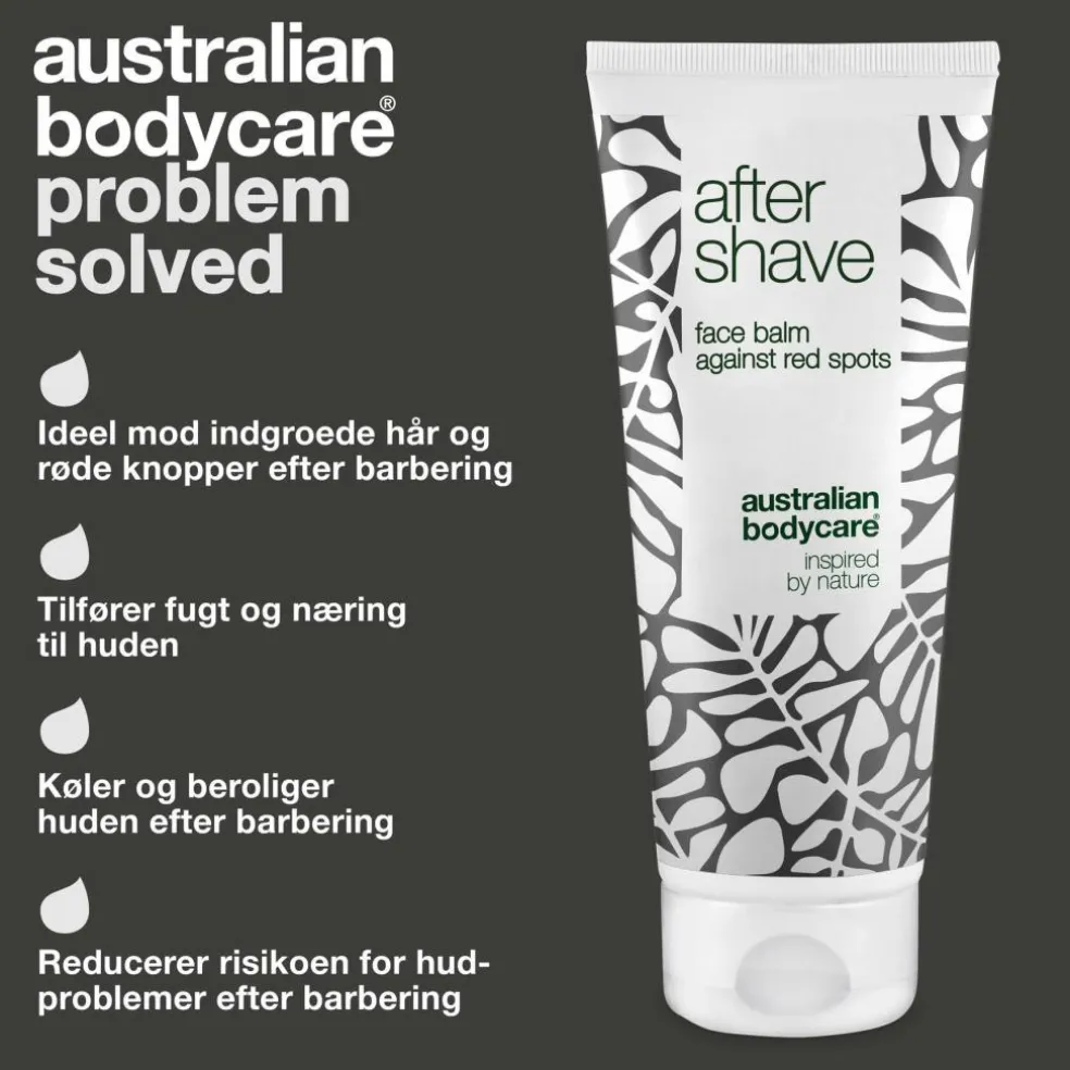 Ved at bruge en god face balm med Tea Tree Oil kan du minimere forekomsten af røde knopper, skægpest og indgroede hår efter din barbering. After Shave fra Australian Bodycare er tilsat Tea Tree Oil på grund af oliens bakteriemodvirkende egenskaber. Produktet danner et beskyttende lag på huden, så bakterier og andet snavs ikke trænger ned i hudens porer og forårsager hudproblemer.