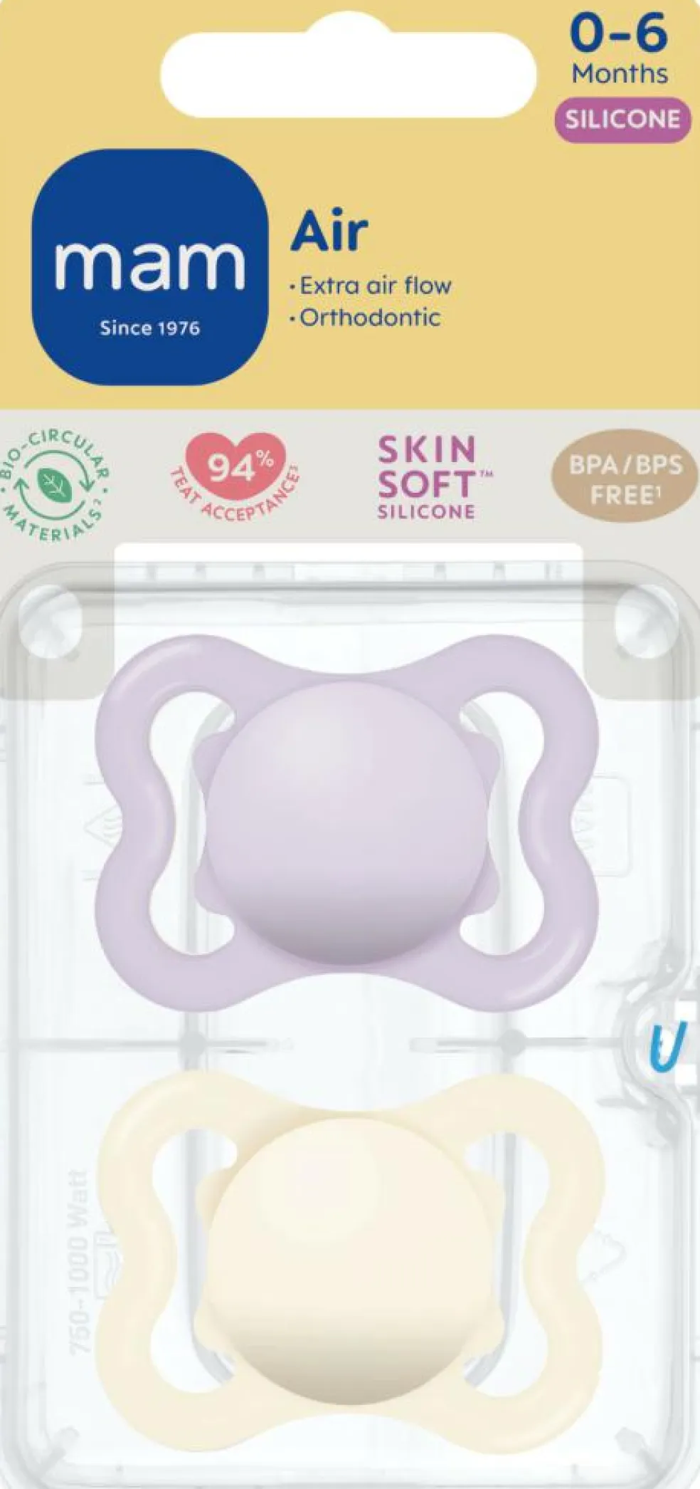 Sugedelen er lavet af silkeblød silikone, MAMSkinSoftTM-silikone som føles blød og velkendt, ligesom mors hud, og som accepteres af 94% af alle babyer*.