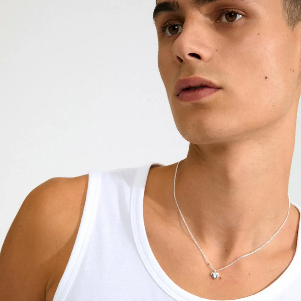 Slank sølvbelagt halskæde med et petit hjertevedhæng, der giver et sødt, diskret og ultra romantisk touch til dit look.