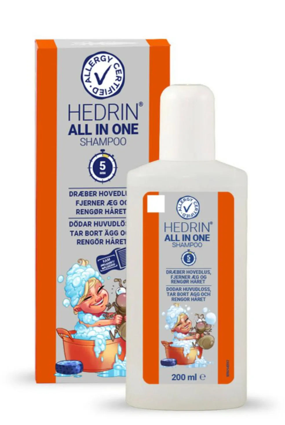 • ALL IN ONE pakke med både luseshampoo og lusekam