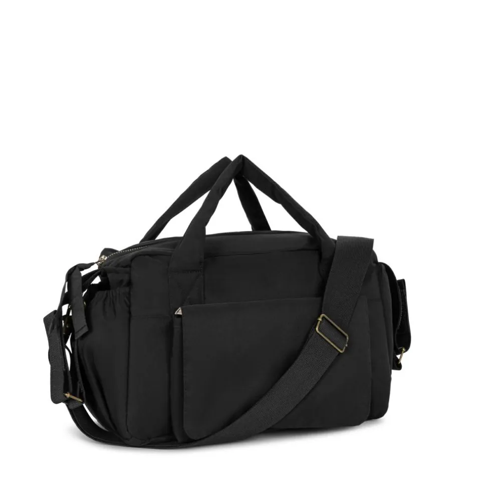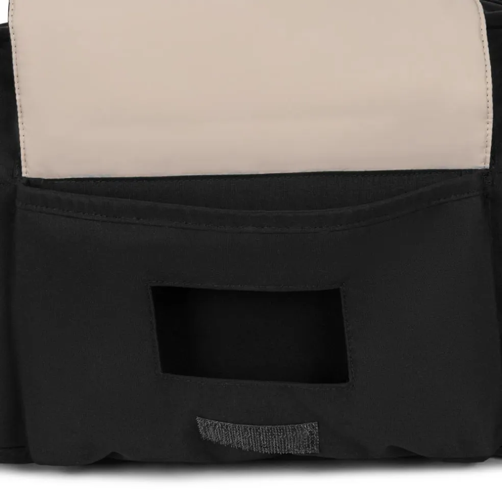 Tasken er designet med praktisk lomme til fx vådservietter, samt en termolomme på siden til en flaske.