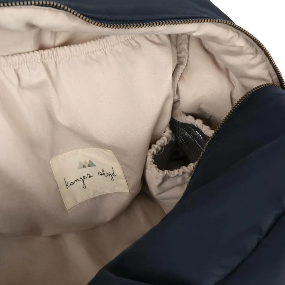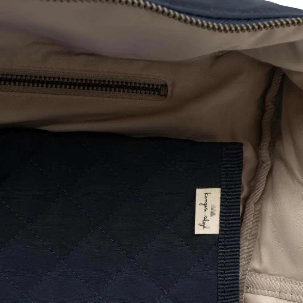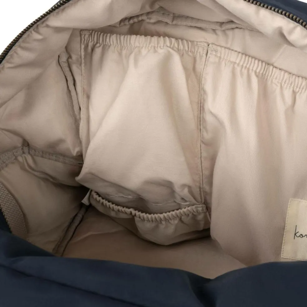 På ydersiden er der to lommer, én af dem særligt designet til at indeholde vådservietter. Tasken inkluderer en udtagelig, polstret skiftepude. Tasken har stor opbevaringskapacitet og kan også bruges som weekendtaske. Den har en aftagelig og justerbar skulderstrop og et grab-and-go håndtag.