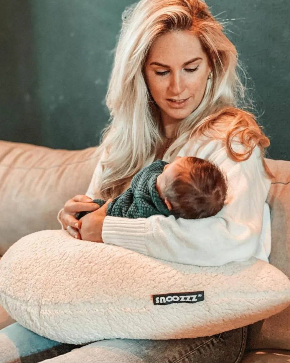Hos Snoozzz får du en fast ammepude i en praktisk størrelse, som også kan bruges som graviditetspude, støttepude og til mavetid til din baby.