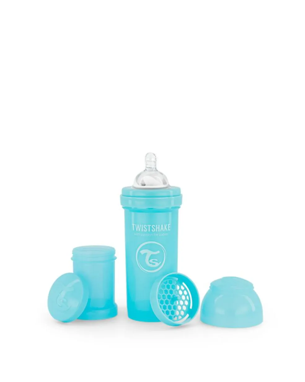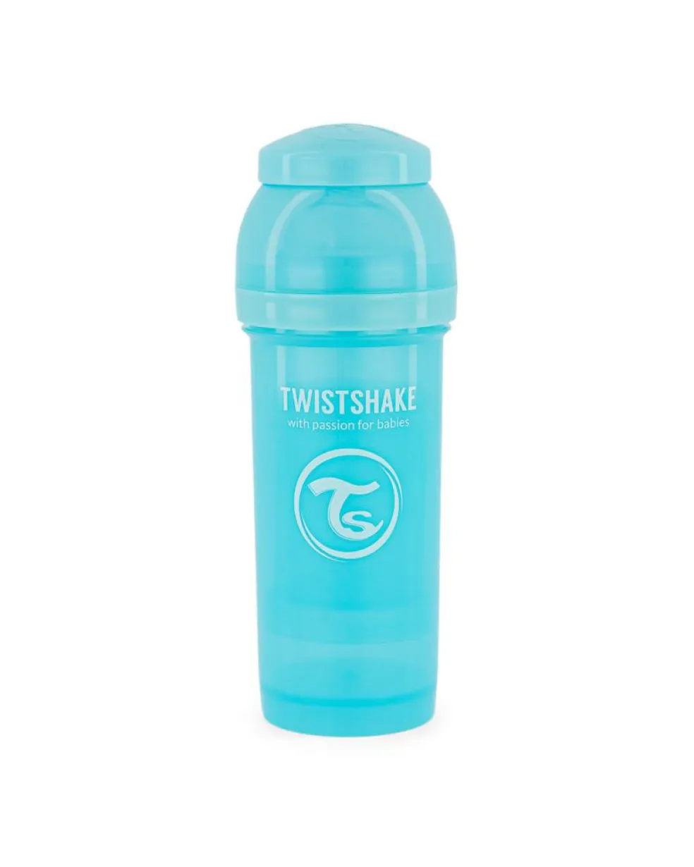 Med sin velovervejede form og det smarte design skaber Twistshakes sutteflaske en behagelig spisetid for dig og barnet. Flaskens form har det unikke TwistFlow anti-koliksystem, der har en luftventil og et mixer-net. Dette skaber et stabilt flow, der forhindrer unødvendig luft i at nå ned i barnets mave. Sutteflasken er fremstillet af PP-plast.