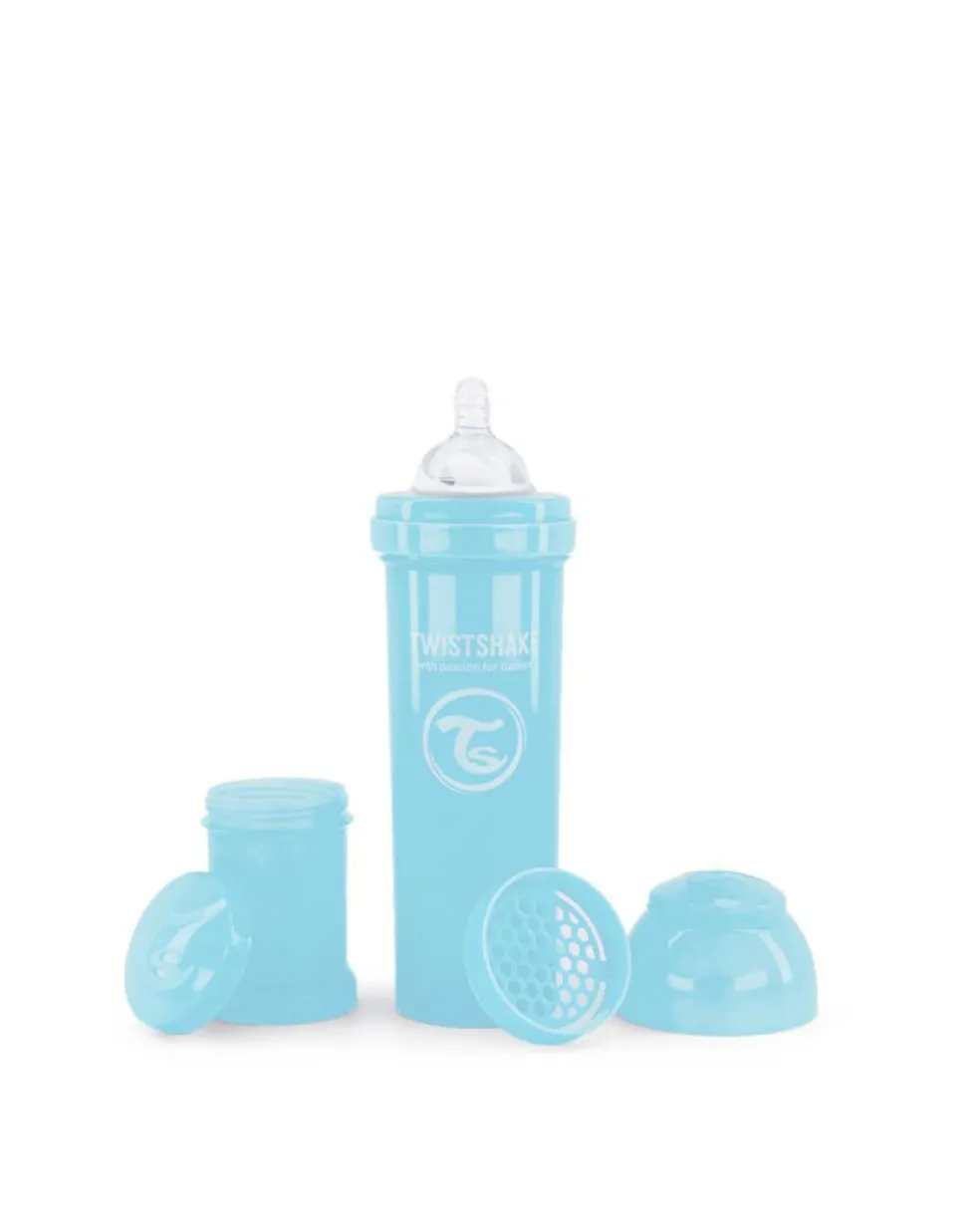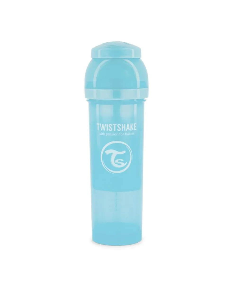 Med sin velovervejede form og det smarte design skaber Twistshakes sutteflaske en behagelig spisetid for dig og barnet. Flaskens form har det unikke TwistFlow anti-koliksystem, der har en luftventil og et mixer-net. Dette skaber et stabilt flow, der forhindrer unødvendig luft i at nå ned i barnets mave. Sutteflasken er fremstillet af PP-plast.