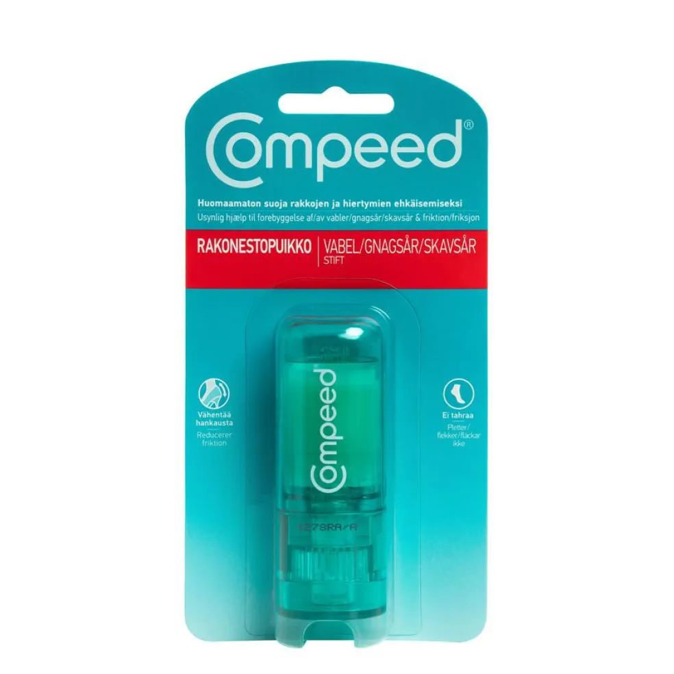 COMPEED® Antivabelstift reducerer øjeblikkeligt friktion på huden, hvilket hjælper med at forhindre vabeldannelse. Nem at påføre og sviner ikke.