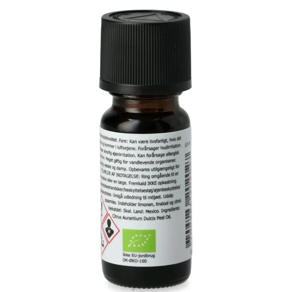 Fremstillet ved koldpresning af skal fra økologisk Citrus sinensis.