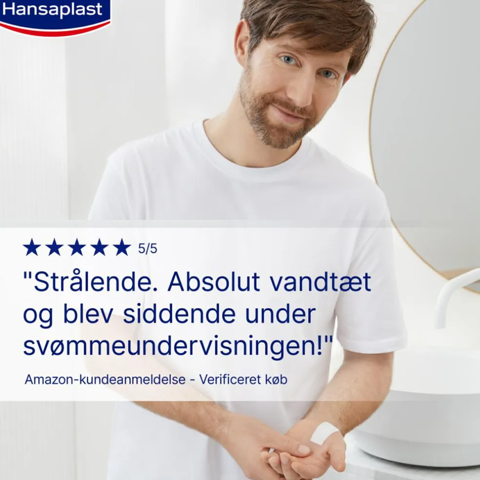 Det sterile plaster har en vandtæt, fleksibel film med stærke klæbeegenskaber, hvilket betyder, at Hansaplast Aqua Protect XL kan anvendes ved vask, brusebad, badning og svømning.