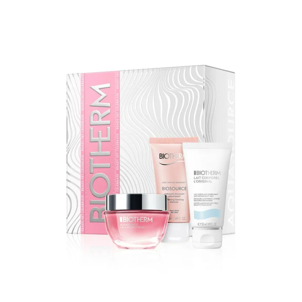 Med Aquasource Cica Nutri Holiday Set får du en komplet hudplejerutine. Rens først huden med Biosource Softening Foaming Cleanser for en smuk og velplejet hud. Afslut med at fugte med Aquasource Cica Nutri Cream. Sættet indeholder også en Lait Corporel Body Lotion, som du skal bruge på kroppen efter du har været i bad.