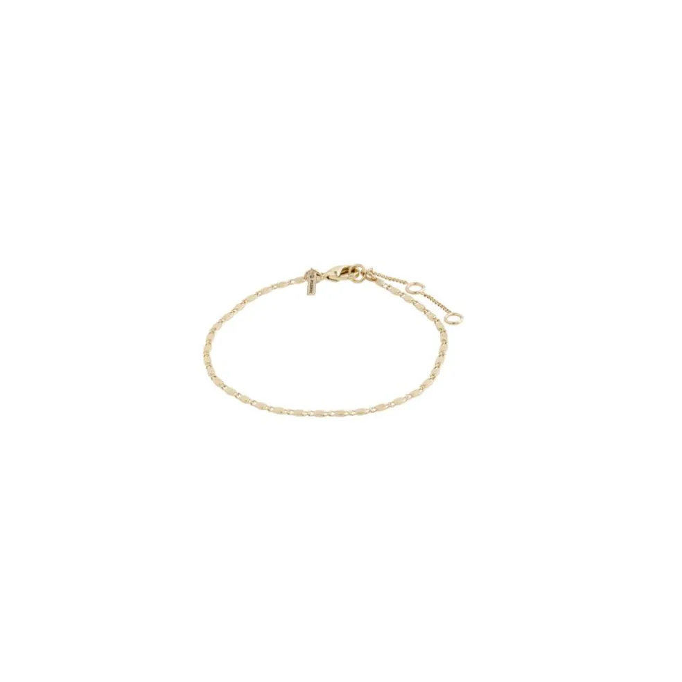Delikat guldbelagt armlænke med flot struktur. De flade led giver en lækker lysreflektion, når kæden bevæger sig på armen. En klassiker, som også vil være perfekt i et look med flere armlænker fra Pilgrims kollektioner. Mix frit og find din unikke kombination til den lækre T-shirt eller den feminine strikbluse.
