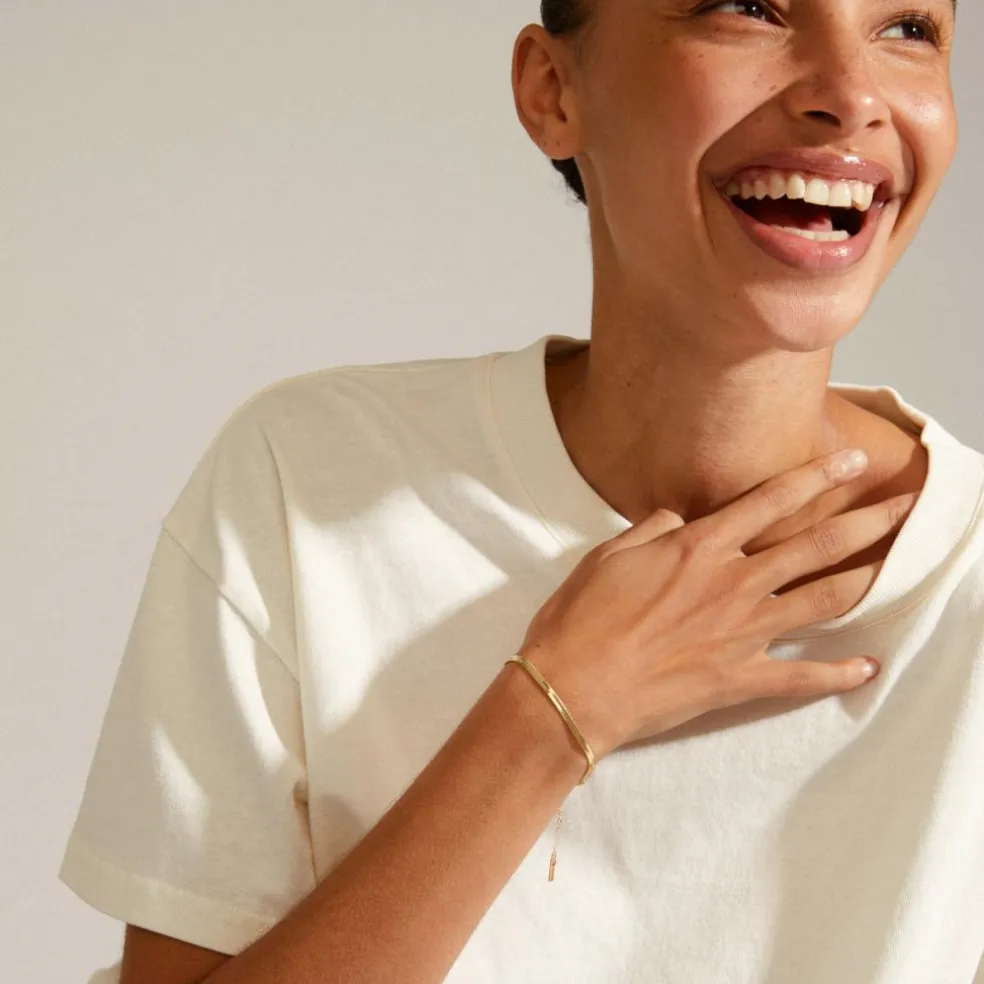 Own your glow! Det guldbelagte flat snake chain armbånd fra Pilgrims Classics-kollektion er din nye everyday favourite. Den glatte finish giver et clean, powerful look, der tilføjer classy vibes til både casual outfits og dressed-up moments. Et must-have piece med timeless appeal og effortless shine – perfekt til både at style solo eller som en del af et stacked look. Armbåndet er i vandfast kvalitet og fremstillet af 99% genanvendt materiale – fashion med omtanke.