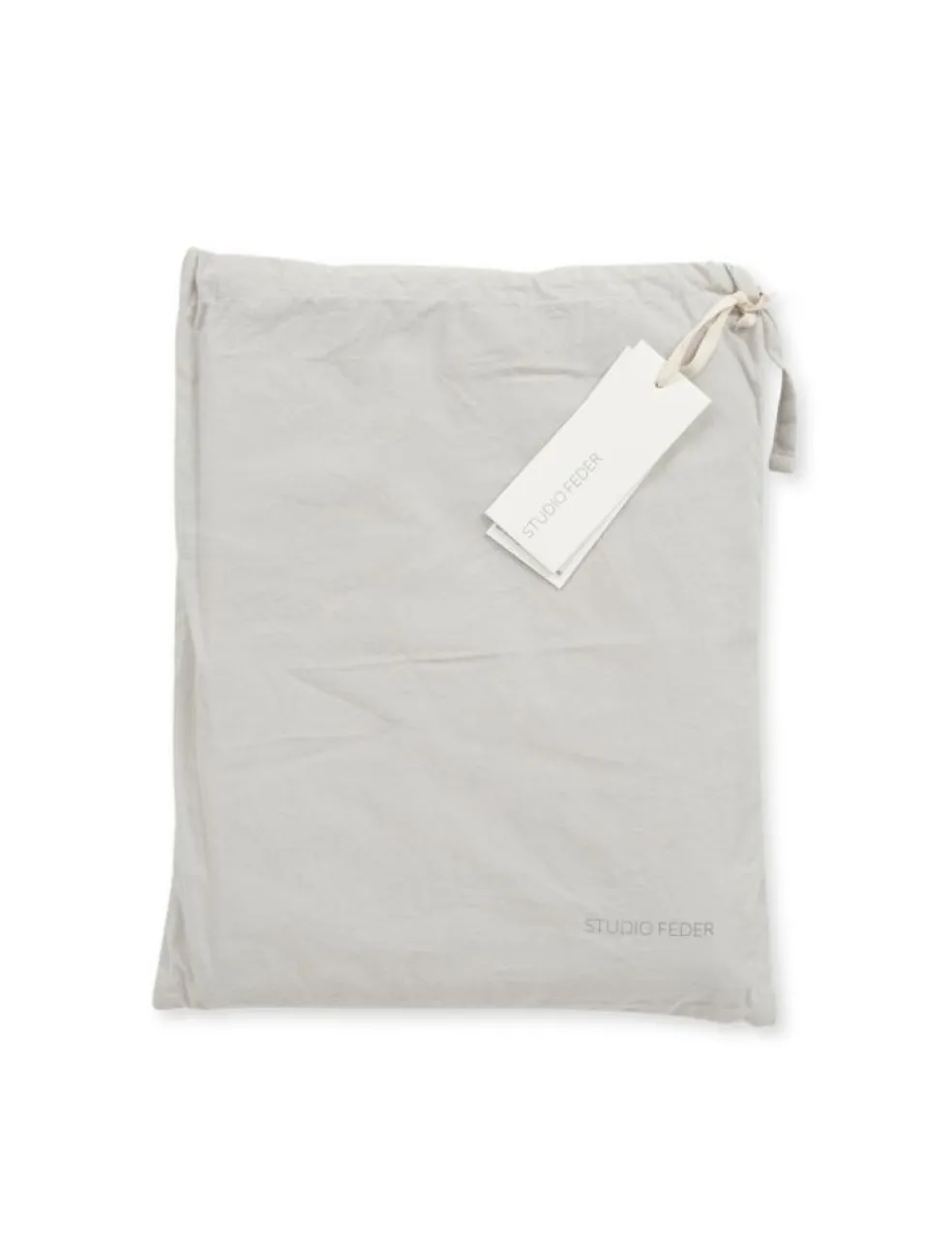 Sengetøjet leveres i en matchende stofpose, der lukkes foroven med bindebånd og kan bruges til f.eks. opbevaring af sko eller legetøj.