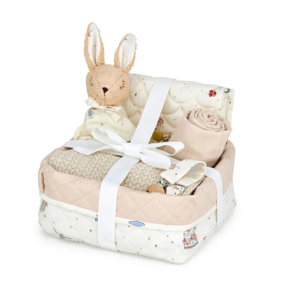 En overdådig Gavekurv med skønne baby must haves af højeste kvalitet, der med sikkerhed vil glæde nye forældre og deres små mirakler.