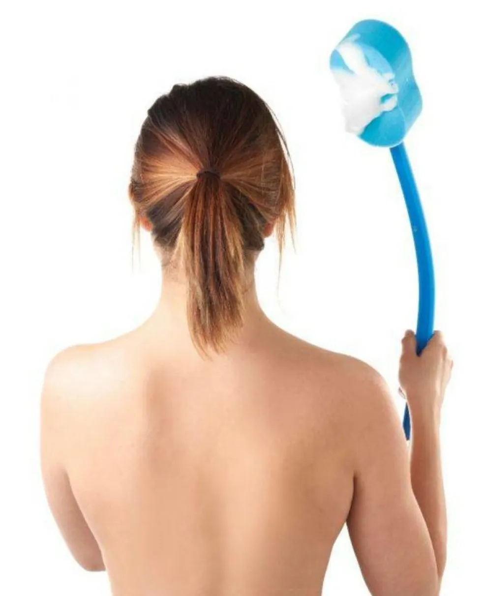 Det forlængede skaft på denne badesvamp gør det lettere for brugeren, at vaske sig og også selv nå svært tilgængelige områder af kroppen (f.eks. ryggen) Når den 44,5 cm lange skaft opvarmes med en hårtørrer, kan den bøjes i enhver ønsket form. Størrelse: 59 cm Vægt: 61 gram Farve: Blå