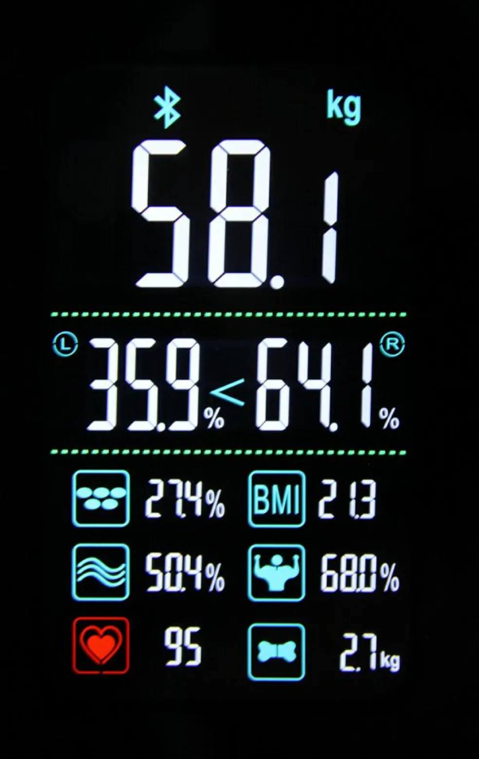 Takket være dens XXL-baggrundsbelyste skærm Unik 4-kontakts teknologi til dobbelt bioimpedansmåling: mere nøjagtig og mere pålidelig.