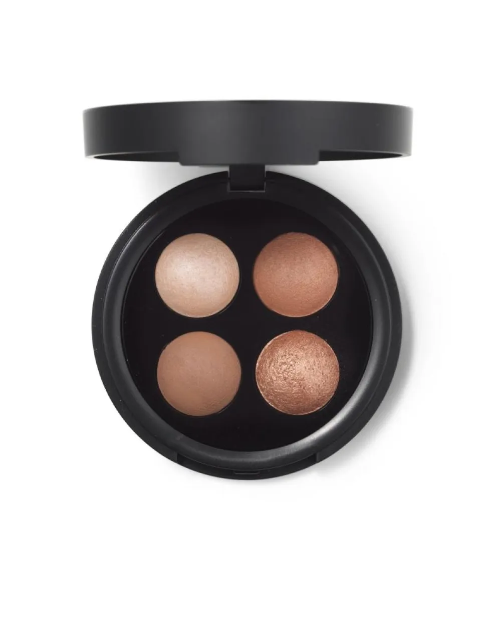 Brug den lyse nuance med diskret perlemorseffekt til at highlighte øjenkrogen og brynbenet og de mørkere matte nuancer til at definere globelinjen.