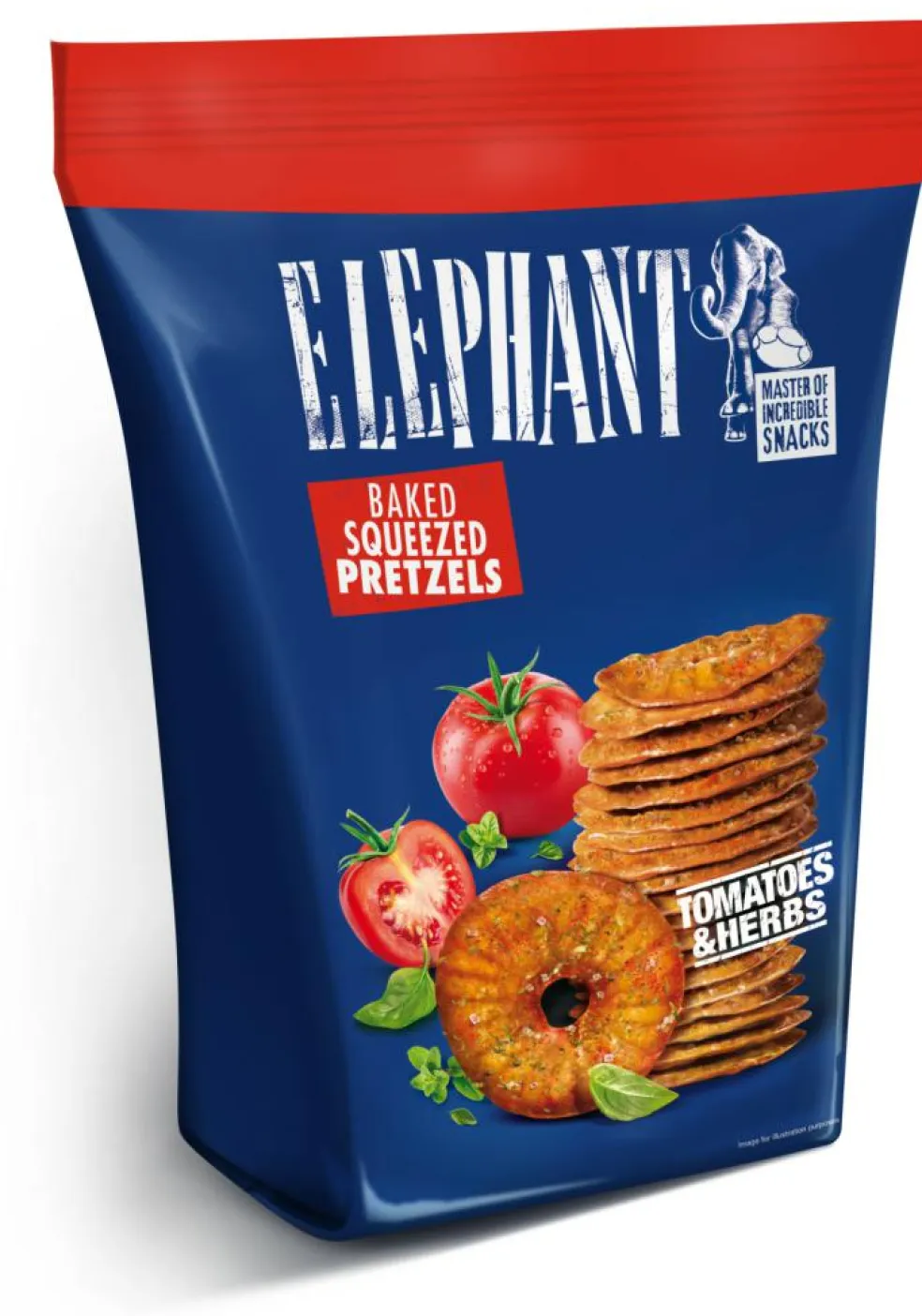 De naturlige ingrediensers perfekte blanding af krydderier, bagte tomater og ost gør Elephant-kringlerne til en perfekt snack.