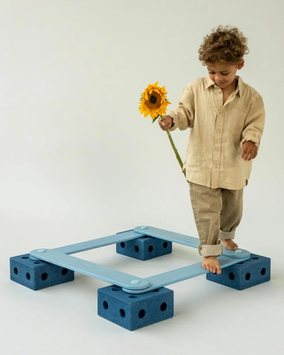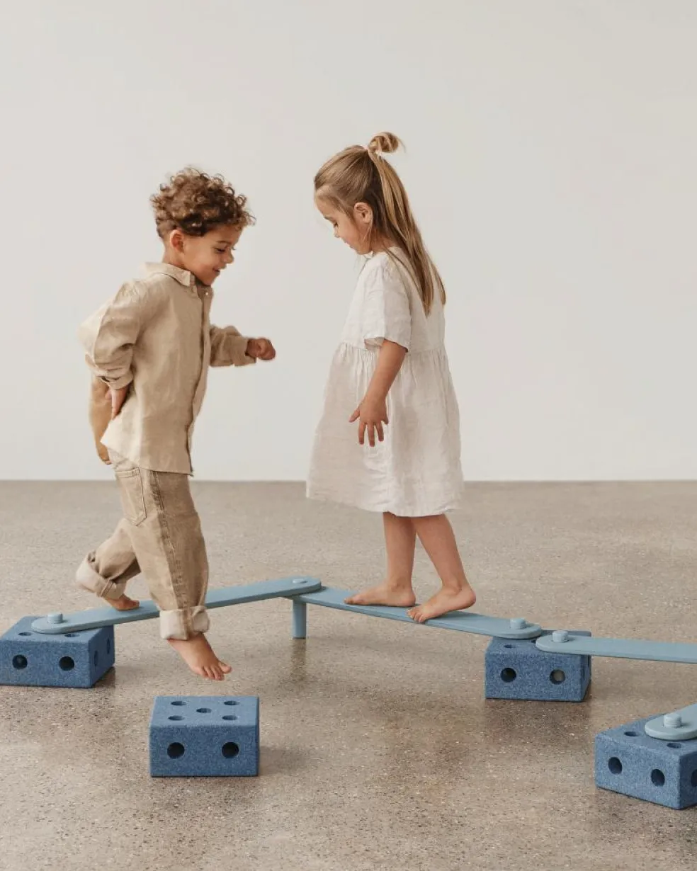 Med dette sæt af bomme og klodser kan børn designe deres egne balancebaner og udfordre deres koordination og motorik med mindst 10 forskellige baner på forskellige niveauer — og flere at udforske!