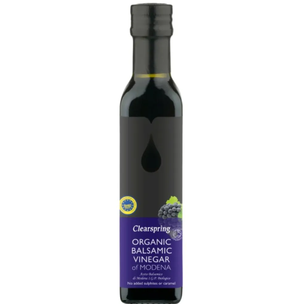 Clearsprings økologisk balsamico eddike er produceret af Mengazzoli-familien i Modena. Familien bruger århundreder gamle traditionelle processer til at producere en balsamicoeddike i bedste kvalitet. Dette involverer omhyggeligt at udvælge de fineste økologiske Trebbiano-druer på vinstokken før saften forsigtigt simres for at koncentrere dens essens. Derefter blandes den med den fineste vineddike og lagres på træfade.