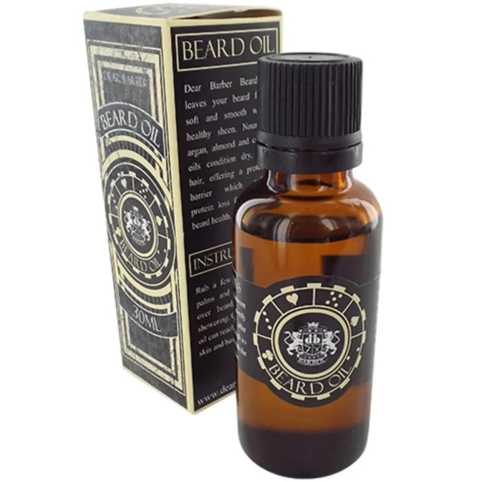 Dear Barber Beard Oil er en velduftende skægolie til fuldskæg og moustache eller overskæg. Denne skægolie blødgør, beskytter og plejer skægget og efterlader det med en sund glans. Skægolien fra Dear Barber indeholder plejende arganolie, mandelolie og kokosolie. Påføres bedst i let fugtigt skæg, hvorefter der redes gennem med en skægkam eller skægbørste for optimal effekt på hud og hår Specifikationer